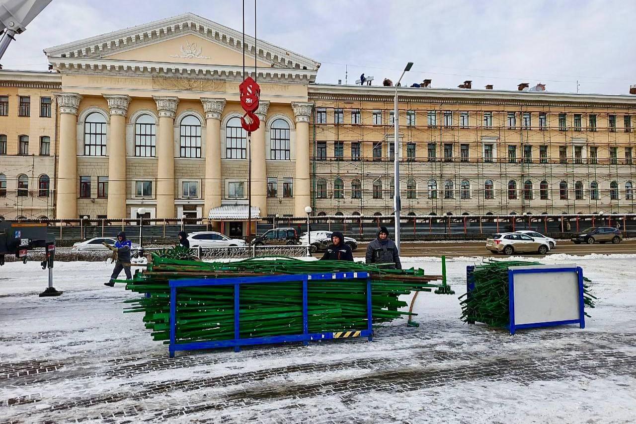 В Томске начали устанавливать главную ель городаВысота праздничного дерева составит 24 метра
