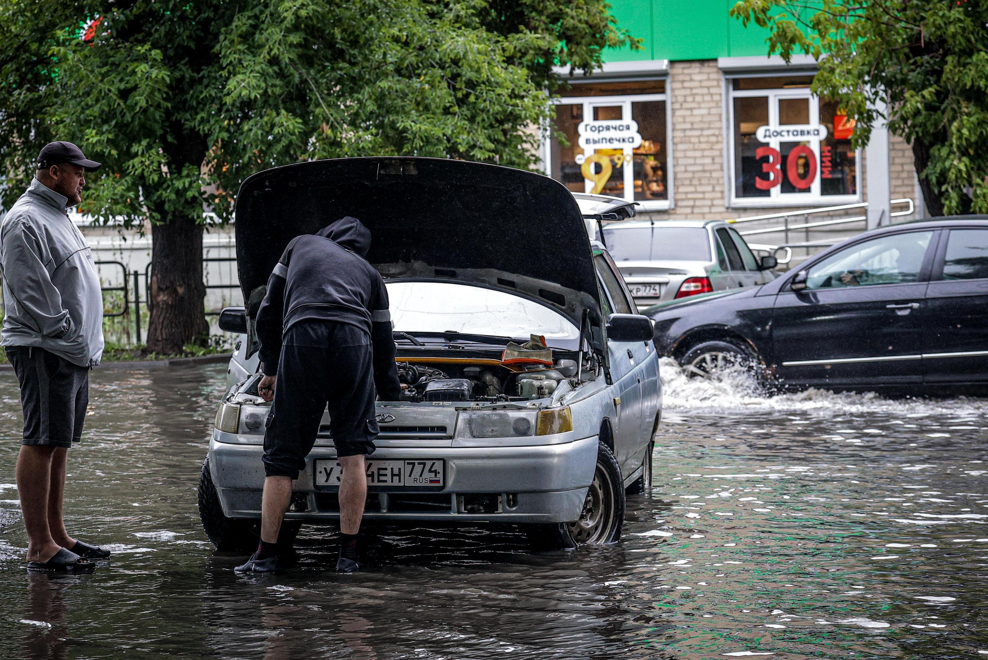 На город в России обрушились необычные молнии, дороги затопило, а машины поплыли: видеоВетер валил деревья на провода