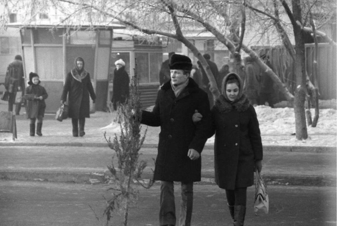 Новогодние гуляние у «Пассажа Второва» на проспекте Ленина (декабрь 1959 года)